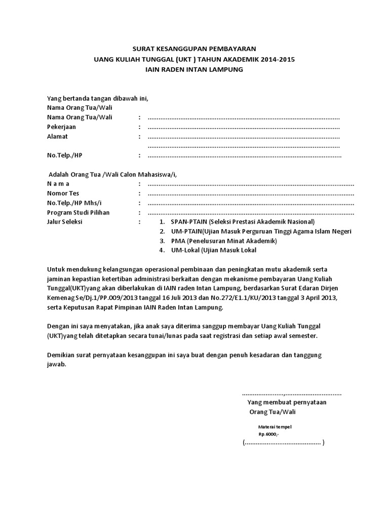 Contoh Surat Pernyataan Kesanggupan Membayar Uang Kuliah : Data Dukung Calon Mahasiswa Baru Tahun Akademik 2015 2016 Nomor Peserta Jalur Penerimaan Program Studi Fakultas Pdf Download Gratis / Ketika anda meminjam uang kepaa orang lain, maka mungkin.. 24 september 2020 • 5 mins read. Budi wiryawan sebesar rp100.000.000,00 (seratus. Contoh surat pernyataan kerja adalah sebuah surat mengenai kesanggupan seorang karyawan untuk bekerja dalam kondisi tertentu. Yuk intip juga contoh surat izin orang tua/ wali untuk kegiatan sekolah yang baik dan benar ya. Efendi january 24, 2021 contoh surat no comments.